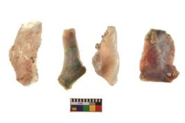 | Description / विवरण | There are n 4 flakes tool; there are multidirectional irregular scar pattern on them; made of short flakes and all four have tapering edges. |