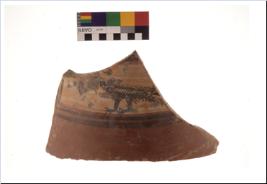 | Description / विवरण | Specimen of potsherd with black decorative animal Crocodile motif painting . |