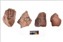 | Description / विवरण | There are n-4 of utilized flake cores. There are multidirectional irregular dominant scar pattern on both dorsal and ventral face of the cores. Some of them bulge of percussion and some are flat flake cores. |