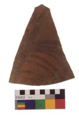 | Description / विवरण | The potsherd is decorated with two horizontal bands, one on the rim and other on the body ,while between them are set of triple aches. |