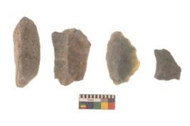 | Description / विवरण | There are n 4 flakes tool; there are large flakes with sides trimmed, Marks of secondary flaking are present on the both the faces.The dorsal is relatively flat. |