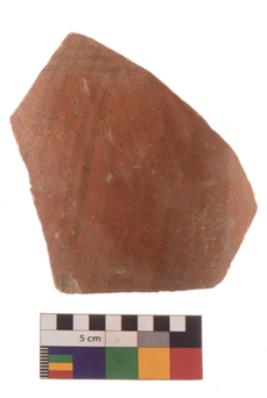 | Description / विवरण | Specimen of potter tool with black decorative geometric Net Pattern painting . |