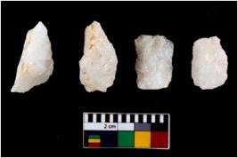 | Description / विवरण | There are n 4 flake cores. All of them are fully fluted flake cores without any trace of crested ridge flakes. Some are tapering at one end. Some have flat base and some have blunted edges. |