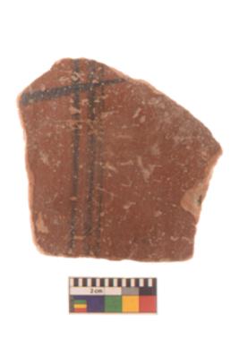 | Description / विवरण | Specimen of Potsherd black on red painted pottery. It is fine fabric in sharp contrast with painted design are executed in black pigment. |