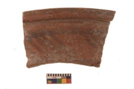 | Description / विवरण | Specimen of Potsherd with black decorative linear painting . |