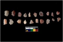 | Description / विवरण | Specimen of flakes Chips with prominent flaking marks. It made up of a short flakes with sides trimmed. |