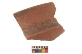 | Description / विवरण | Specimen of a Potsherd with black decorative geometric painting on it.It is set of two zigzag bands. |