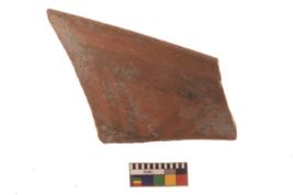 | Description / विवरण | Specimen of Potsherd with black decorative linear painting . |