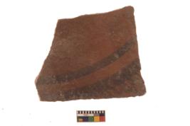 | Description / विवरण | Specimen of Potsherd black on red painted pottery. It is fine fabric in sharp contrast with painted design are executed in black pigment. |