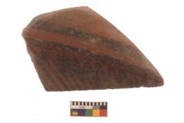 | Description / विवरण | Specimen of a Potsherd with black decorative geometric painting on it.It is set of two zigzag bands. |