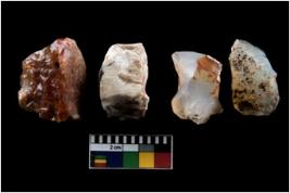 | Description / विवरण | These are n 4 of worked tools. They are tapering at one end and have sharp edges. They have round base and show dominant irregular scar pattern. They have broken tip. |