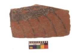 | Description / विवरण | Specimen of Potsherd with black decorative linear painting . |