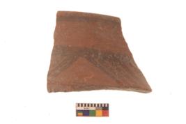 | Description / विवरण | Specimen of Potsherd with black decorative linear painting . |