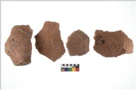 | Description / विवरण | There are n-4 of utilized flake cores. There are multidirectional irregular dominant scar pattern on both dorsal and ventral face of the cores. Some of them bulge of percussion and some are flat flake cores. |