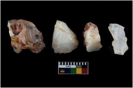 | Description / विवरण | These are n 4 of worked tools. They are tapering at one end and have sharp edges. They have round base and show dominant irregular scar pattern. |