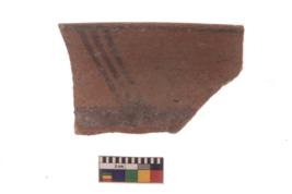| Description / विवरण | Specimen of Potsherd with black decorative linear painting . |