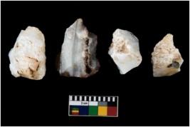 | Description / विवरण | These are n 4 of worked tools. They are tapering at one end and have sharp edges. They have round base and show dominant irregular scar pattern. |