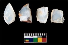 | Description / विवरण | These are n 4 of worked tools. They are tapering at one end and have sharp edges. They have round base and show dominant irregular scar pattern. |