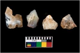 | Description / विवरण | These are n 4 of worked tools. They are tapering at one end and have sharp edges. They have round base and show dominant irregular scar pattern. |