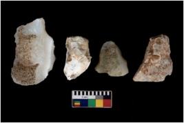 | Description / विवरण | There are n 4 flake cores. All of them are fully fluted flake cores without any trace of crested ridge flakes. |