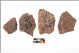 | Description / विवरण | There are n 4 cores; one of chert and three of chalceony. The ridges on the core runs parallel to the edge. One has a flat base. |