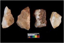 | Description / विवरण | There are n 4 flake cores. All of them are fully fluted flake cores without any trace of crested ridge flakes. |