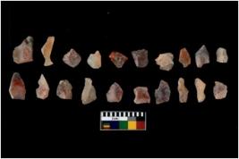 | Description / विवरण | Specimen of flakes Chips with prominent flaking marks. It made up of a short flakes with sides trimmed. |