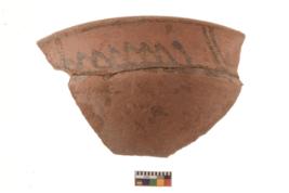 | Description / विवरण | Specimen of a Potsherd with black decorative geometric painting on it.It is set of zigzag bands. |