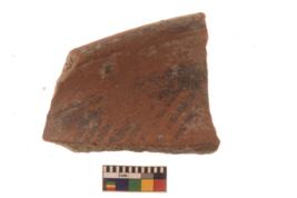 | Description / विवरण | Specimen of Potsherd with black decorative linear painting . |