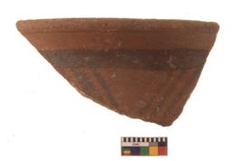 | Description / विवरण | Specimen of Potsherd with black decorative linear painting . |