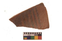 | Description / विवरण | Specimen of Potsherd with black decorative linear painting . |