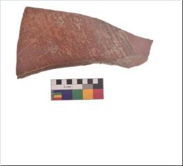 | Description / विवरण | Specimen of black on red ware with black decorative Parallel vertical lines geometric painting. |