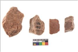 | Description / विवरण | There are n-4 of utilized flake cores. There are multidirectional irregular dominant scar pattern on both dorsal and ventral face of the cores. |