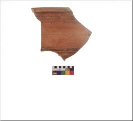 | Description / विवरण | Specimen of black on red ware with black decorative Parallel Horizontal lines geometric painting. |