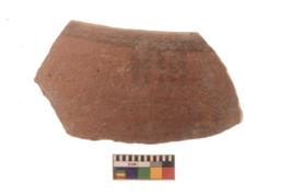 | Description / विवरण | Specimen of Potsherd with black decorative linear painting . |