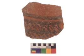 | Description / विवरण | Specimen of a Potsherd with black decorative geometric painting on it.It is set of two zigzag bands. |