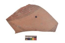 | Description / विवरण | Specimen of black on red ware with black decorative Parallel horizontal lines geometric painting. |