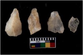 | Description / विवरण | There are n 4 flakes tool; there are multidirectional irregular scar pattern on them; made of short flakes and all four have tapering edges. |