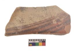 | Description / विवरण | Specimen of black on red ware with black decorative Parallel horizontal lines geometric painting. |