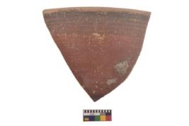 | Description / विवरण | Specimen of black on red ware with black decorative Concentric lines geometric painting. |