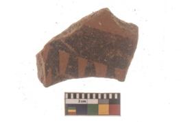 | Description / विवरण | Specimen of Potsherd black on red painted pottery. It is fine fabric in sharp contrast with painted design are executed in black pigment. |