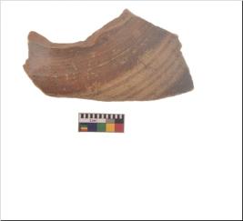 | Description / विवरण | Specimen of black on red ware with black decorative Concentric lines geometric painting. |