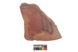 | Description / विवरण | Specimen of black on red ware with black decorative Vertical lines between horizontal lines geometric painting. |