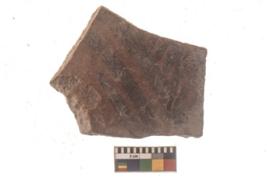 | Description / विवरण | Specimen of Potsherd black on red painted pottery. It is fine fabric in sharp contrast with painted design are executed in black pigment. |