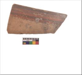 | Description / विवरण | Specimen of black on red ware with black decorative Horizontal lines geometric painting. |