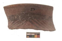 | Description / विवरण | Specimen of Potsherd with black decorative linear painting . |