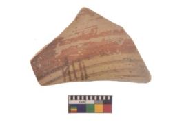 | Description / विवरण | Specimen of black on red ware with black decorative Vertical lines on concentric lines geometric painting. |