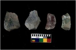 | Description / विवरण | There are n 4 flakes tool; there are flakes tool with prominent flaking marks. It made up of a large flakes with sides trimmed. It is rectangular in shaped. |