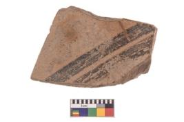 | Description / विवरण | Specimen of black on red ware with black decorative Horizontal lines geometric painting. |