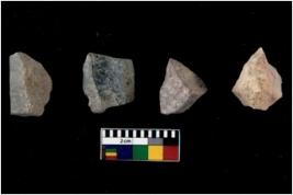 | Description / विवरण | There are n 4 flakes tool; there are flakes with sides trimmed, Marks of secondary flaking are present on the both the faces.The dorsal is relatively flat. |